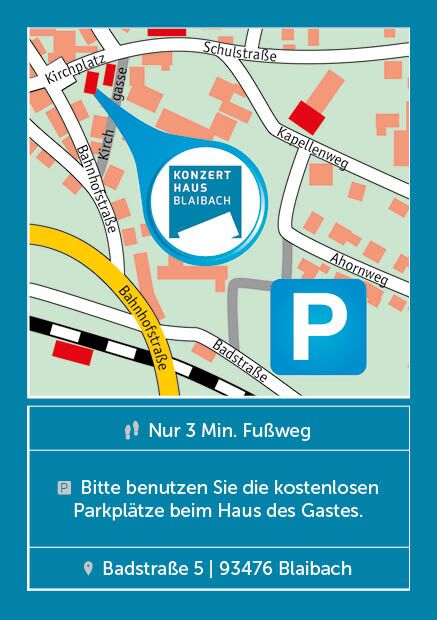 Ausfahrt Amberg Ost – Bundesstraße B85 über Cham bis Chamerau – Weiter Richtung Bad Kötzting und nach 3 km rechts abbiegen nach Blaibach. - Anreise über Autobahn A3